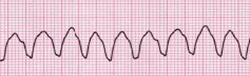The first image is a normal ECG of a healthy heart. The second image is a heart in trouble and not able to pump blood out to the body. This heart would need to be shocked.